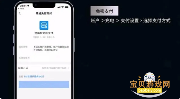 开启:打开特斯拉App,点击“账户”>充电>支付设置>选择支付方式,即可免密支付充电账单