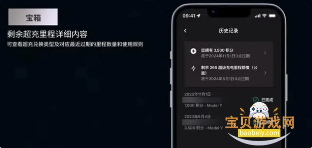 点击宝箱即可查询剩余超充里程详细内容,显示不同超充兑换类型及对应最近过期的里程数量和使用规则。
