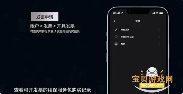 打开账户,查看可开发票的续保服务包购买记录,支持在线申请电子普票和纸质专票。