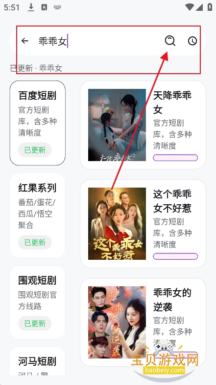 3、直接搜索框输入关键词,精准检索喜欢的短剧内容