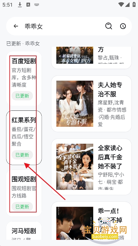 4、左侧可以切换短剧平台,解锁更多搜索结果,让搜索更精准