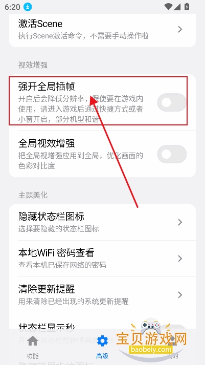 3、例如进入【全局插帧】可以直接勾选图标,开启功能