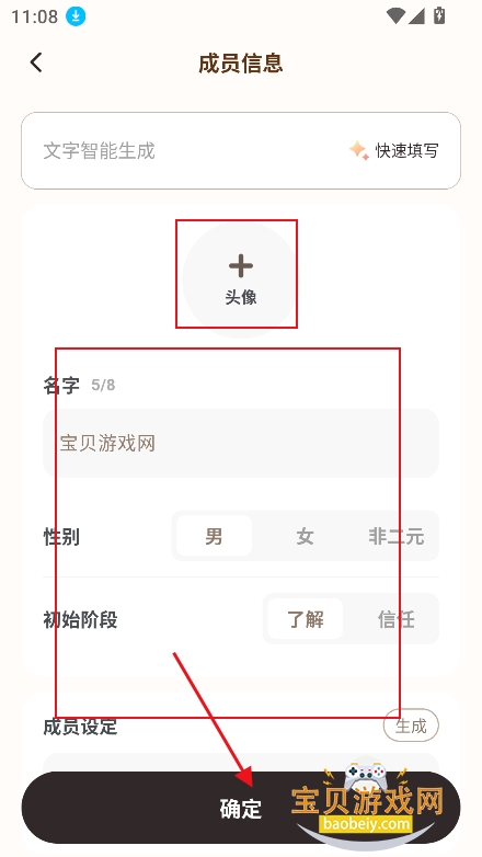 2、上传头像,以及资料等点击确定