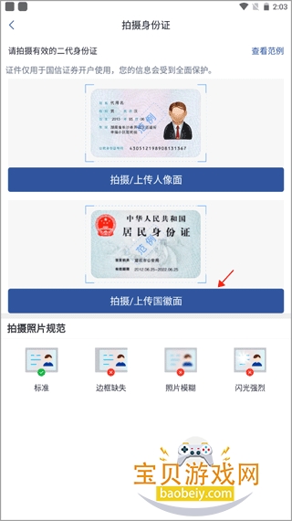 4、上传及的身份证正反面照片,一定要拍的清楚、标准,上传之后跟着提示签署相关协议,进行视频认证过后就能开通新的账户了。
