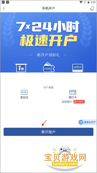 2、点击中间唯一的按钮“新开账户”。