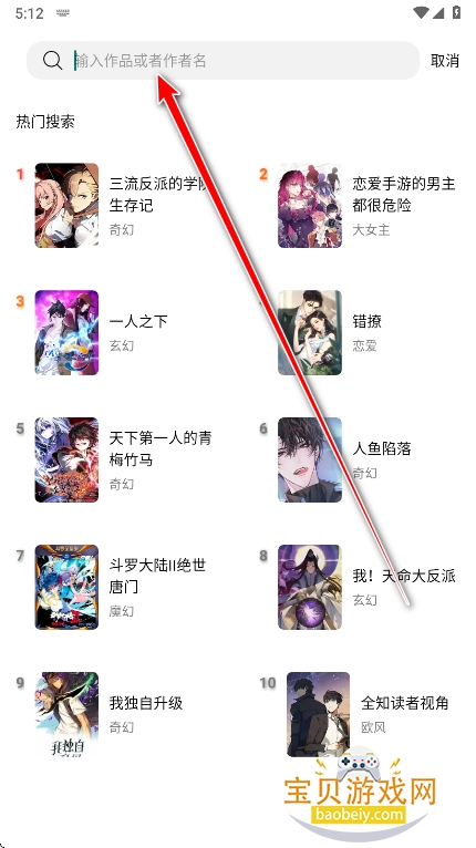 2、或者直接点击右上角搜索框,输入关键词,精准检索漫画