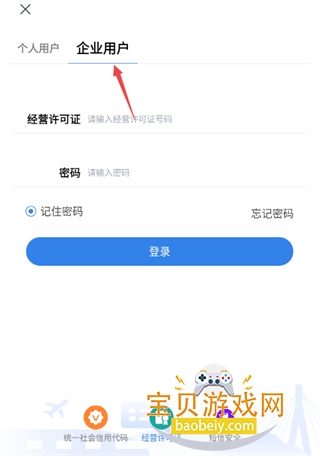 2、选择企业用户登录,输入企业的社会信用代码,创建密码;