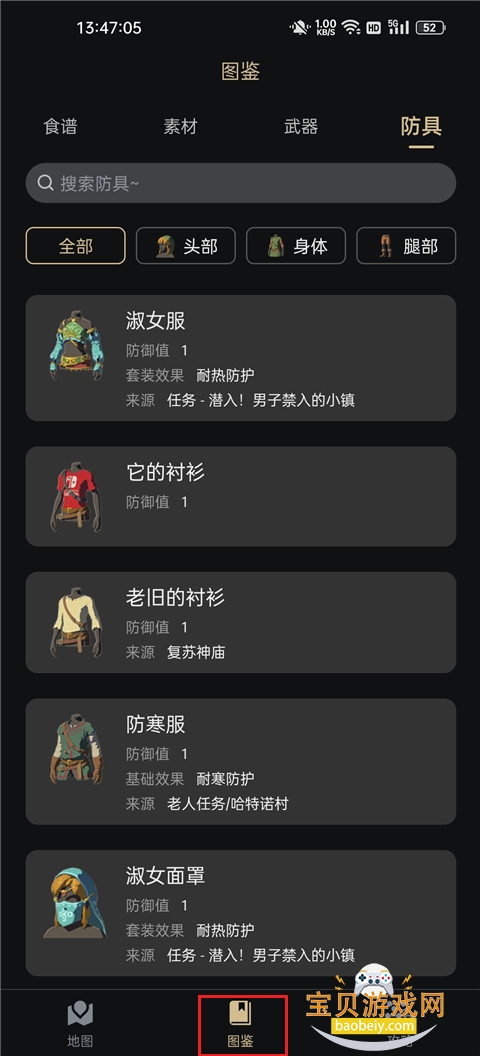 3、还可以点击图鉴查看各种食谱的制作方法以及各种服饰装扮的获取来源