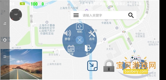 1、Miracle行车记录仪APP主界面由相机预览、地图显示、顶端信息栏和右下的常用功能按钮组成。顶端信息栏包含了时间、电量、时速和地理位置等信息。右下的常用功能按钮从左往右依次是最小化APP成为悬浮窗运行、锁定当前录像、录制/停止和主菜单。