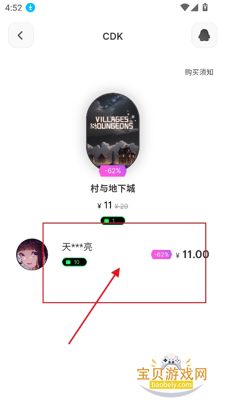 3、进入喜欢的游戏,可以首先查看购买须知,然后点击价格