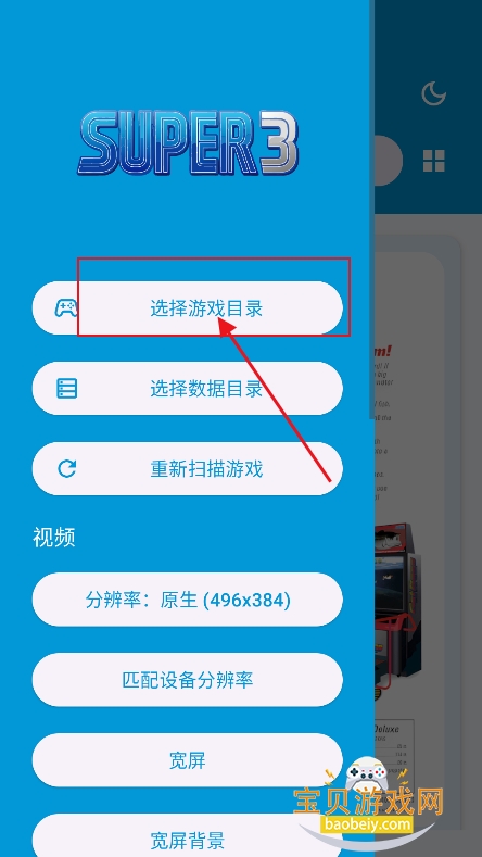 3、将ROM文件放置于设备存储的任意位置后,您可以通过“选择游戏目录”的功能