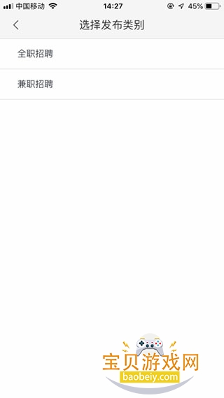 3、点击“发职位找人才”,进入选择招聘类型界面,选择全职或兼职招聘,如下图所示: