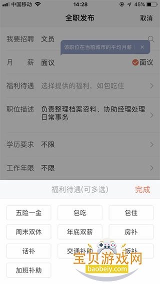 6、填写福利待遇,如下图所示:
