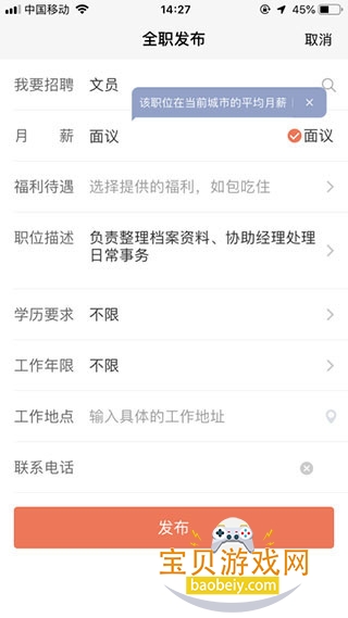 4、以“全职招聘”为例,点击进入页面,填写所需职位,如下图所示: