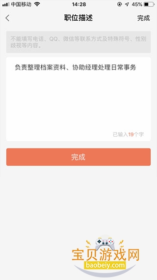 7、填写职位描述,尽可能多描述职位相关信息,方便求职者了解岗位的职责和职能,如下图所示: