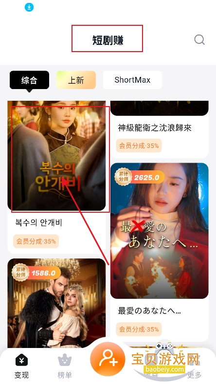 2、例如选择【短剧赚】往下浏览,筛选喜欢的短剧内容
