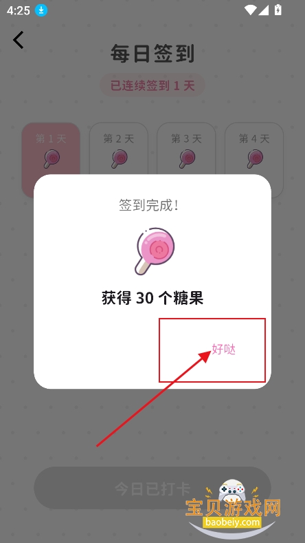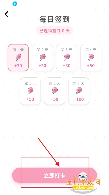 2、点击【立即打卡】就可以领取30糖果