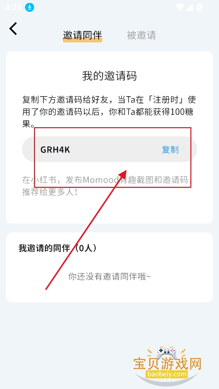 4、然后邀请好友,复制邀请码分享,可以获得100糖果