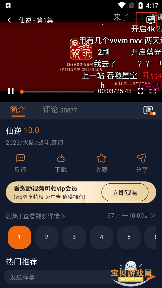 6、随后就可以开始追动漫了,当你想投屏的时候可以点击右上角的投屏