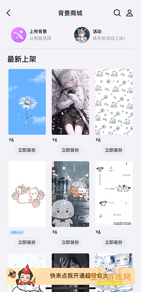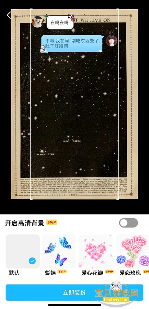 5、如果没有找到自己喜欢的,也可以自己从相册上传图片来制作背景,调整好,再点击立即装扮就可以了