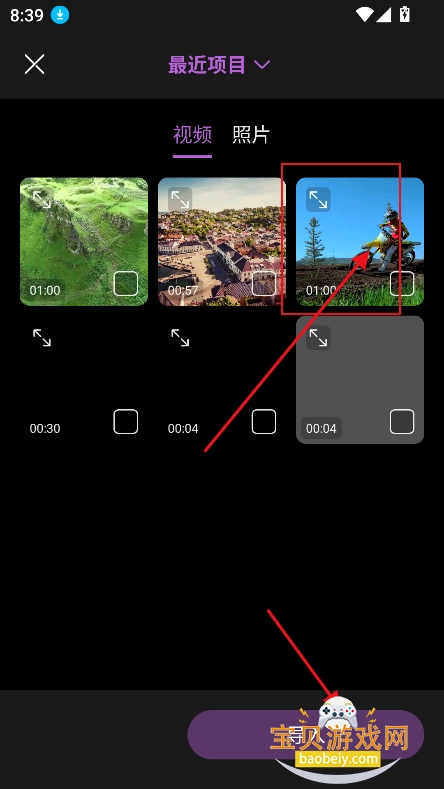 1、进入首页,视频剪辑功能,首先导入视频素材