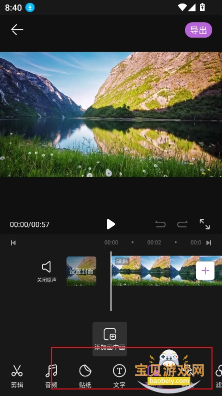 4、下方还有文字,特效,贴纸,以及画中画等功能,根据个人风格进行添加编辑