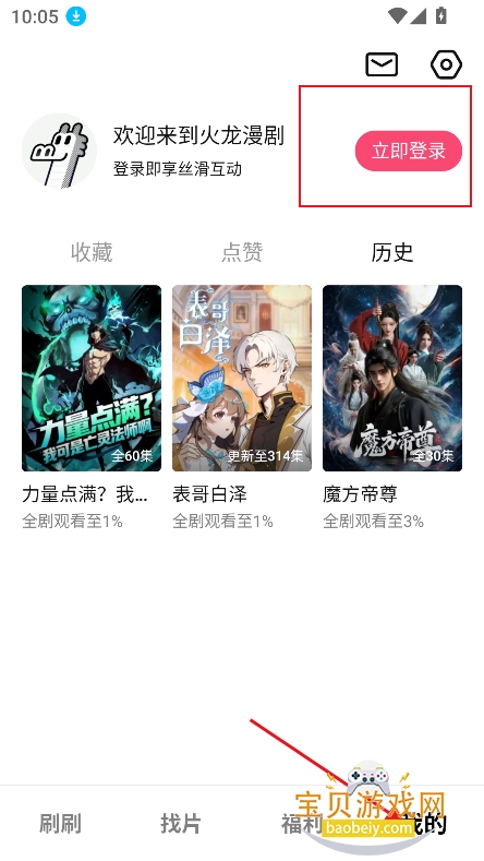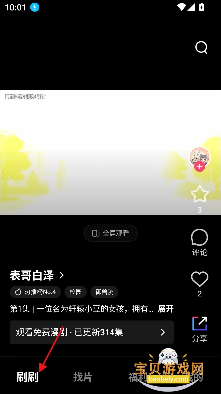 1、进入【刷刷】界面,系统会自动推送当前热门漫剧内容,上下滑动可以切换漫剧