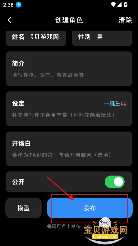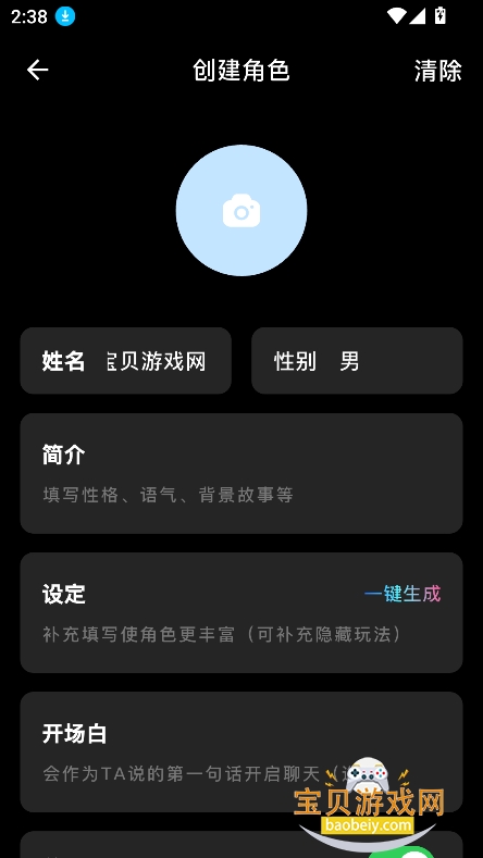 2、上传头像,输入昵称,性格,人物设定等参数