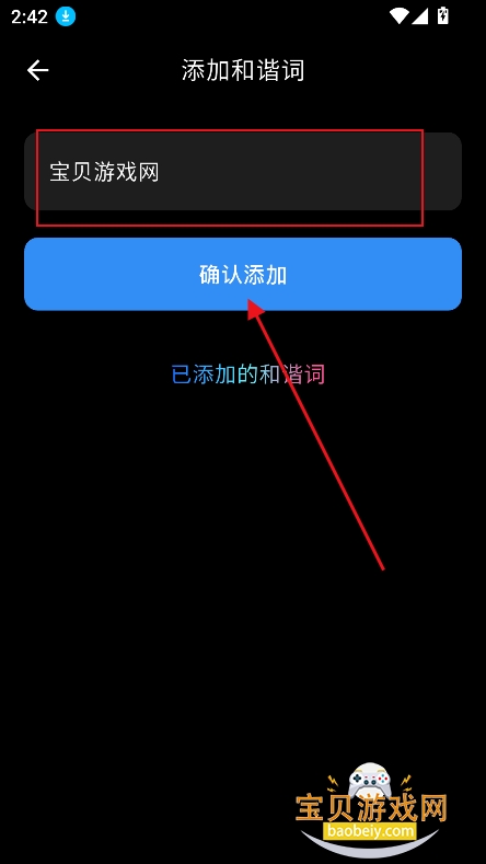 3、输入和谐词,点击【确认添加】
