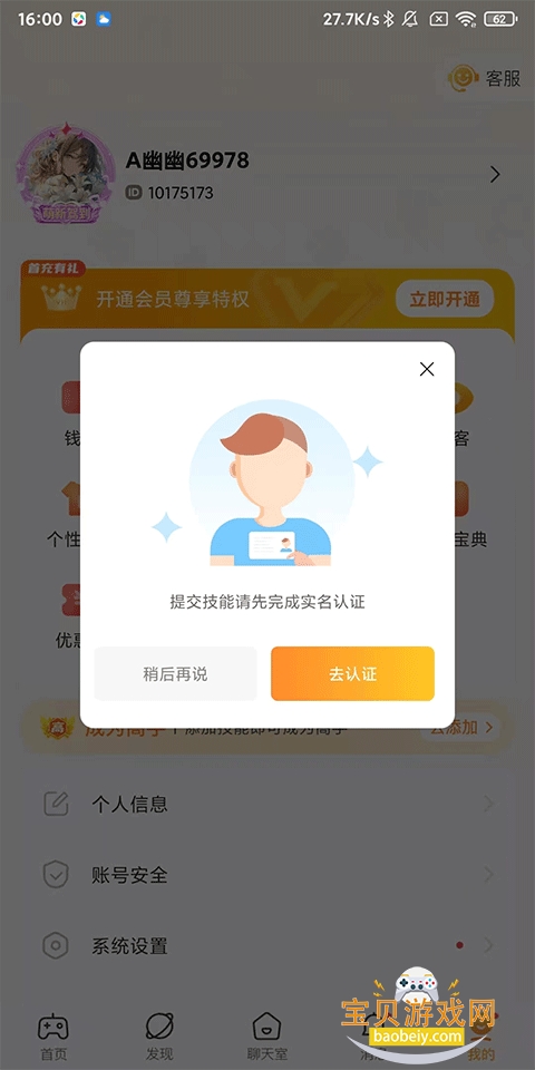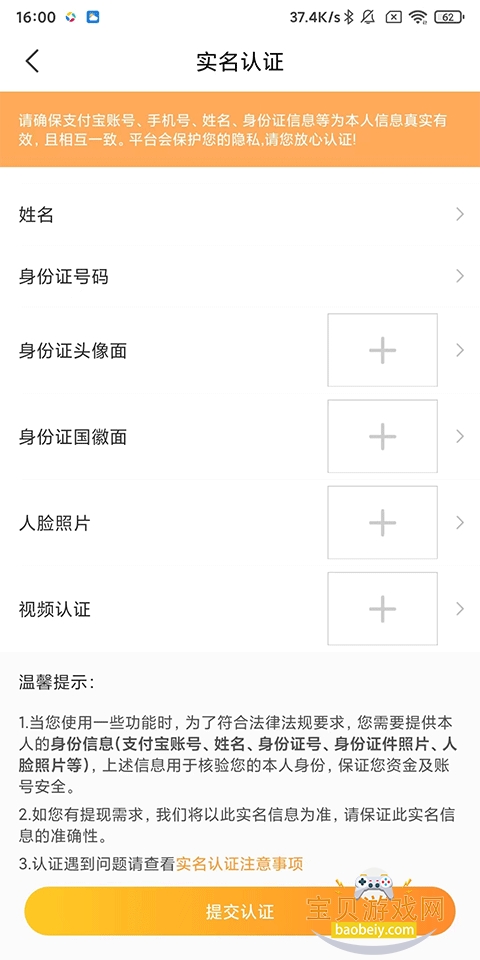 3、填写相关实名认证信息,点击【提交认证】即可开始申请陪玩。