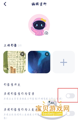 4、若想要使用形象秀作为背景,开启形象秀开关即可。