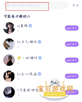 2、在搜索框中输入昵称或者用户ID。