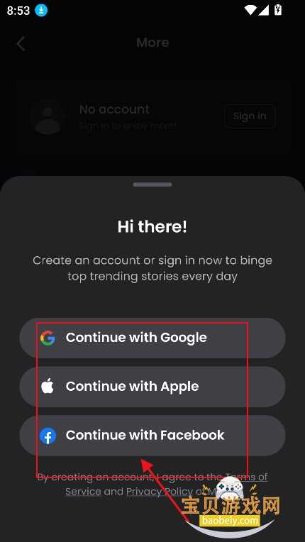 1、进入【more】界面,点击登录