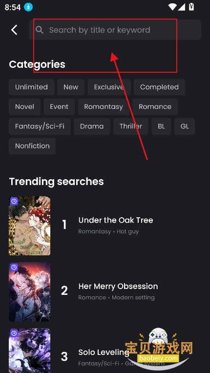 4、或者点击搜索框,直接输入漫画名,作者名,精准检索漫画