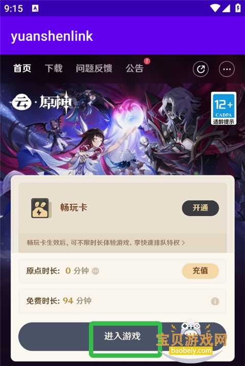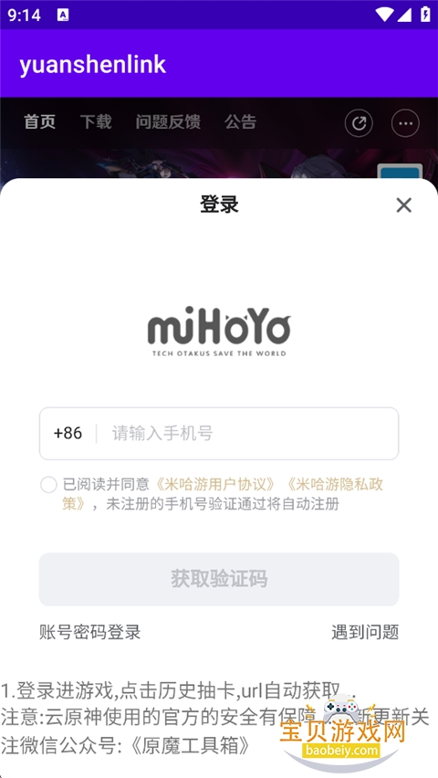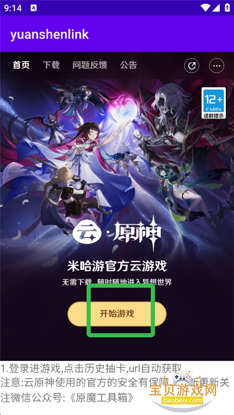 1、打开原神抽卡记录分析工具App,点击【开始游戏】。