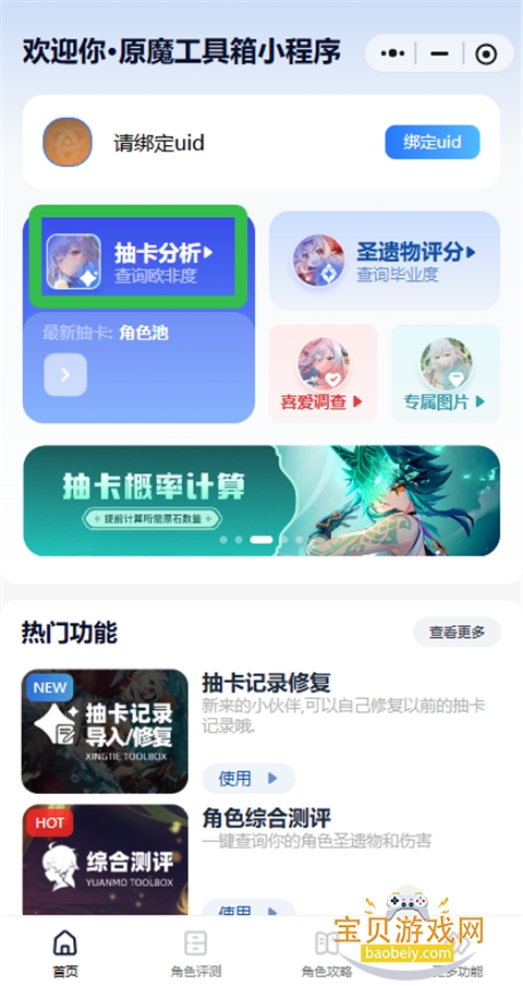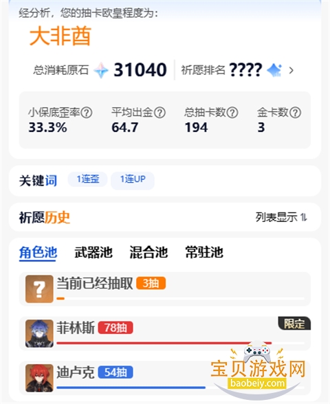 抽卡记录分析:该App允许玩家通过游戏的抽卡历史链接,获取详细的抽卡数据,包括历史抽卡次数、原石消耗量等关键信息。这些数据对于玩家评估自己的抽卡运气和策略具有重要意义。
