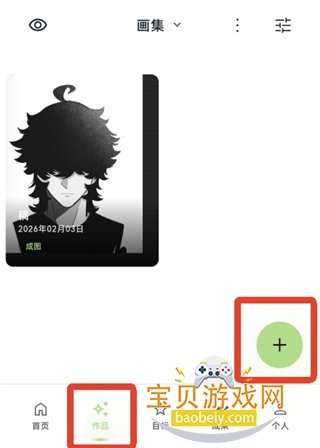 1、登录账号之后,点击下方第二个【作品】,再点击右下角的【+】号。