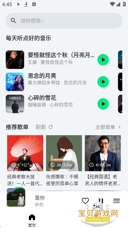 音乐搜索器推荐免费版,宝贝游戏网为大家整理了几款非常不错的音乐搜索神器,整合了QQ音乐、网易云、酷狗等各大主流平台的音乐资源,搜索功能强大,一键就能快速搜索全网音乐,不管是热门流行歌曲,还是各种怀旧复古
