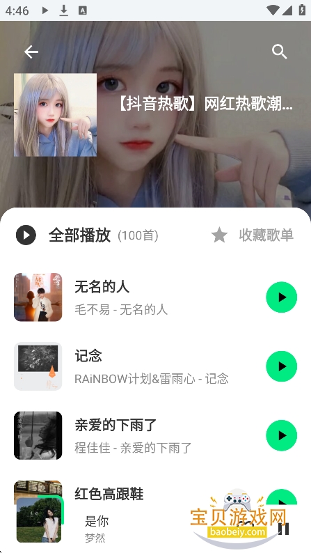 6、进入播放界面,直接点击播放,就可以免费收听音乐了
