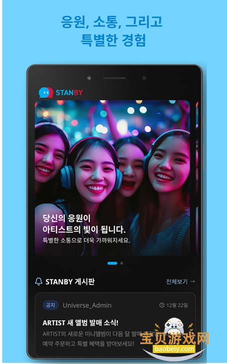 Stanby安卓下载追星软件,是一款面向全球粉丝、主打艺人与用户深度互动的专属社交平台,以实时沟通、社群共建为核心,致力于打造紧密、真诚、有温度的追星互动生态。平台汇聚全球优质艺人与海量忠实粉丝,打破地域与语言壁垒,让追星更直接、互动更真实、连接更紧密。在这里,粉丝可第一时间获取艺人专属动态,与偶像一对一沟通,和全球同好交流应援,通过灵活积分体系解锁更多高阶互动权益,真正实现“近距离追星、沉浸式陪伴”。