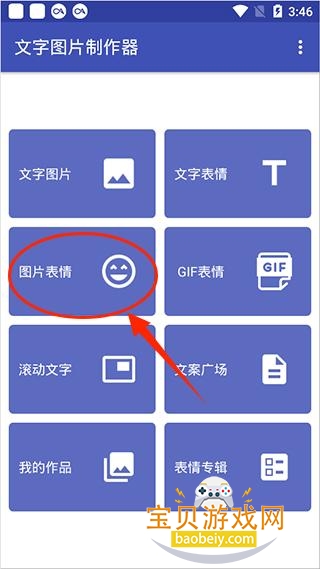 1、下载并打开文字图片制作器手机版,点击“图片表情”选项。