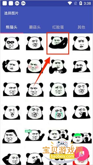 2、这里有热门的图片表情形象,如蘑菇头,熊猫头,红脸蛋等,点击你要制作的图片表情。