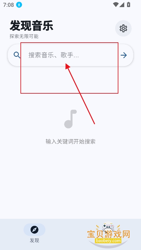 1、进入【发现】板块,可以直接搜索框输入歌手名,歌曲名,精准检索喜欢的音乐