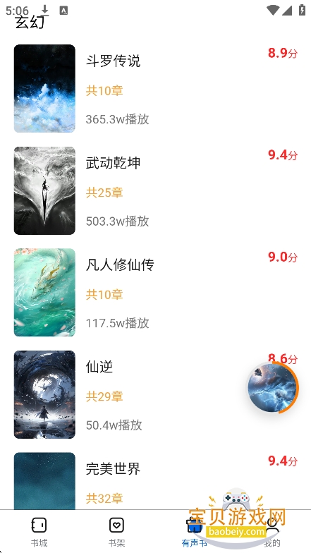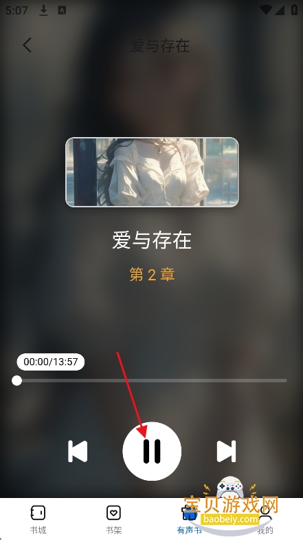 4、在听书界面,点击播放,就可以免费听书了,所有章节都是免费的