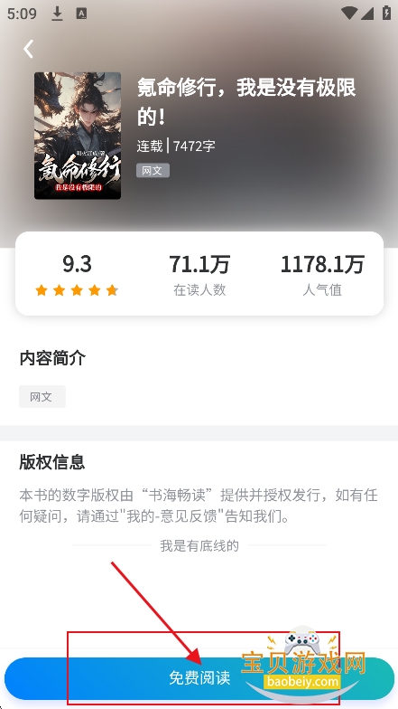 4、进入喜欢的小说界面,点击【免费阅读】