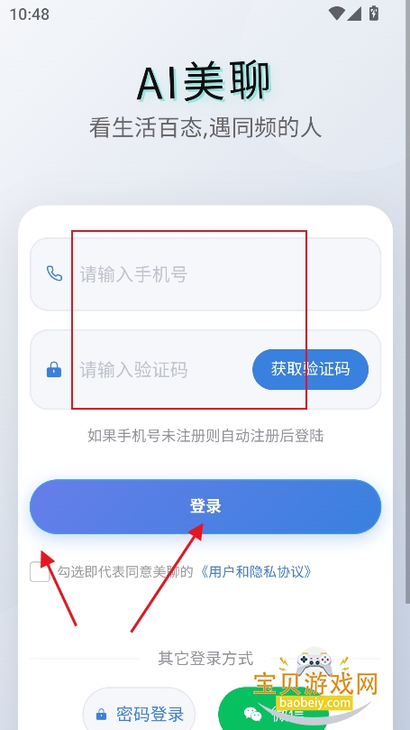 2、在登录界面,直接输入手机号接收验证码即可登录成功,新手机号自动注册为新账号