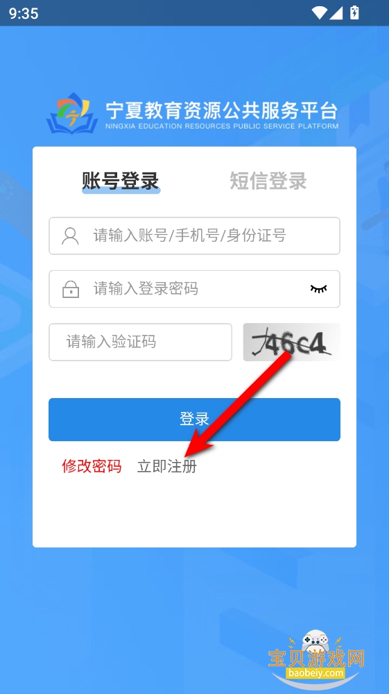 2、进入到登录界面,输入账号密码即可登录,如果没有账号可以点击下方的注册。