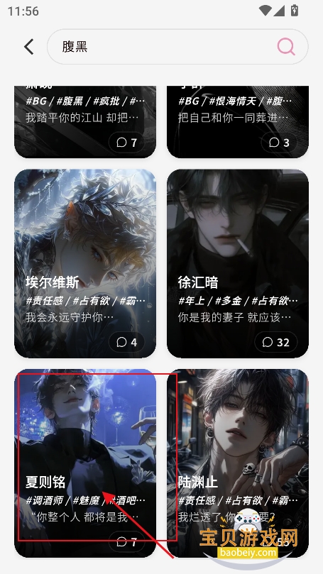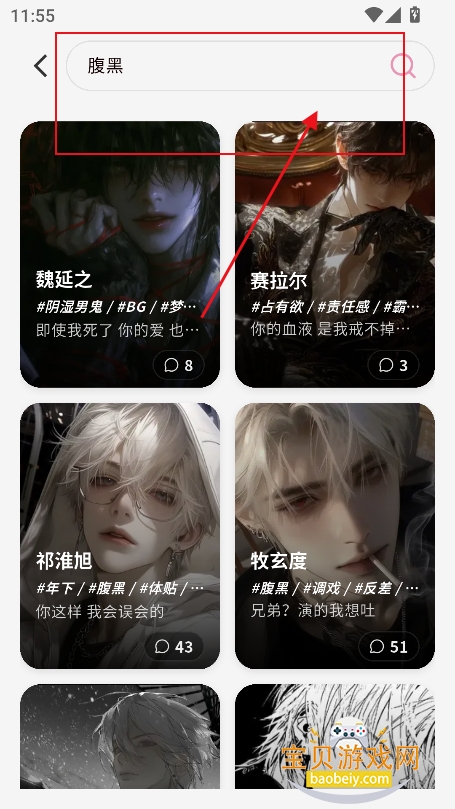 2、或者点击右上角搜索框,输入关键词,精准检索角色