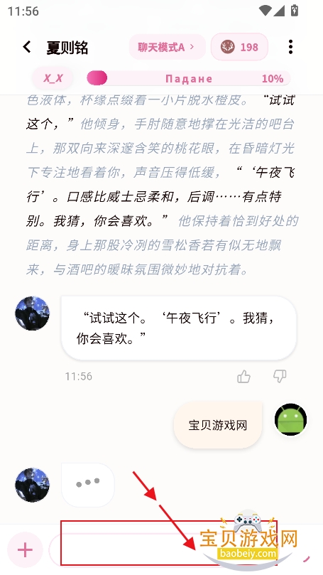 5、进入对话界面,直接在文本框输入对话内容,或者根据剧情,就可以和角色产生对话了