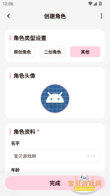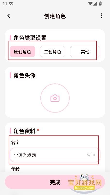 2、选择角色类型,上传角色头像,以及名称等参数